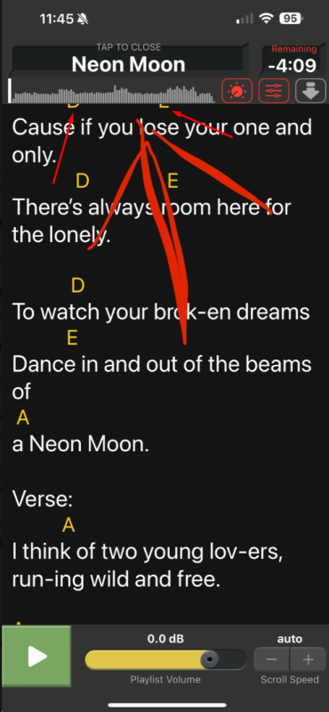 logoclick To @jaytrax point, I've done the same with timestamped lyric sheets when I've accidently put my first timestamp somewhere other than the the first visible line on the lyric page. Easy fix, make sure your first timestamp is on your first visible lyric line AND make sure the first timestamp is [00:00.00]