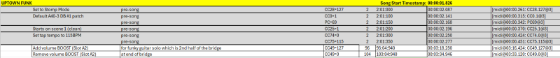 In the case of all the devices I'm automating (Hotone Ampero II Stage, Line 6 Helix LT, Roland SPD-SX PRO, Behringer X32 mixer, and shortly my new Darkglass Anagram) there was an initial frustrating learning curve until I had workout how to send the right MIDI commands, in the right order, with the right timing between commands, etc. and then documented it all. Only then, could I standardise, and thus 'template-ize', for each device and each song and create a workflow with my bandmates.