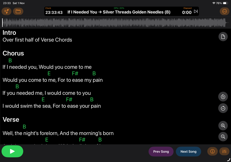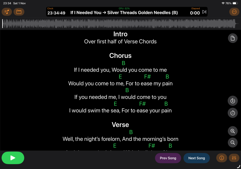 As you can see the chords are way out of position. Our singers find centred so much easier to follow, so hopefully this can be resolved. Not sure if it is as it was in ST3. We never used ST3 in anger as we needed more track playback capability. We used Bandhelper but hoping to use ST4 now.