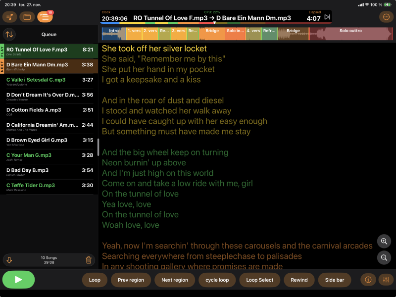 I might be wrong, but I don't think the regions get brighter after they have played, but the waveform changing colour (?) getting brighter?) possibly just makes the region colour look brighter.